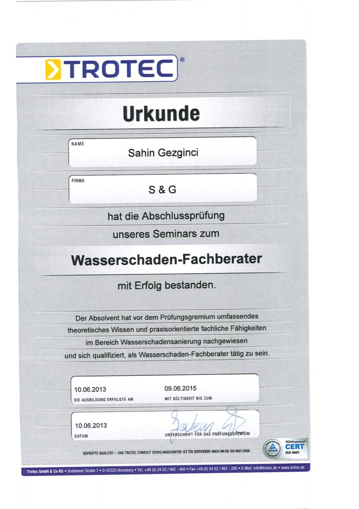 Zertifizierung zum Wasserschaden-Fachberater